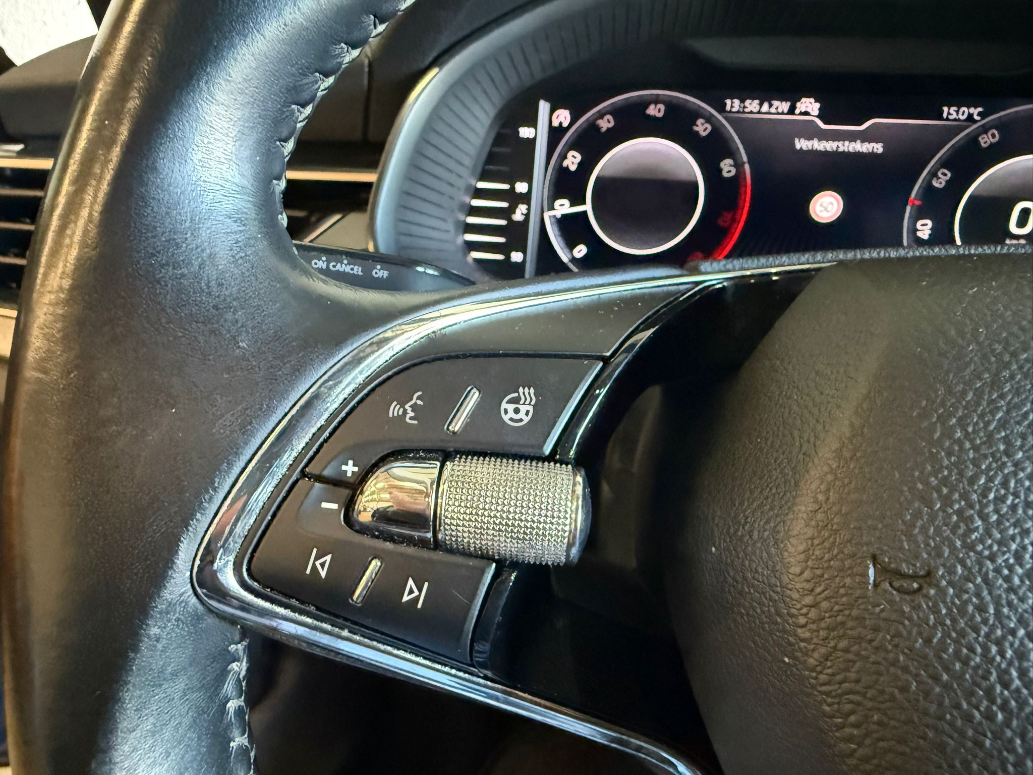 Digitale cockpit, Led verlichting voor en achter, Lederen bekleding met stoelverwarming, Elektrisch verstelbare voorstoelen, Stuurwielverwarming, Achteruitrijcamera, Skoda Sound System, Elektrische trekhaak, Climate control, Lane Assist, Isofix etc.
